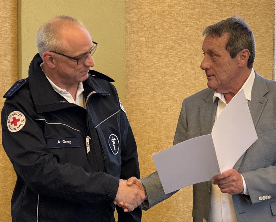 Armin Georg engagiert sich seit mehr als vier Jahrzehnten im DRK. Sein ehrenamtlicher Weg begann bereits Anfang der 1980er-Jahre. Seitdem hat er zahlreiche Funktionen übernommen und maßgeblich zur Entwicklung der örtlichen Strukturen beigetragen. Besonders prägend war sein Einsatz im Vorstand des DRK-Ortsvereins sowie seine Rolle bei der Zusammenführung mehrerer Ortsvereine zum heutigen DRK-Ortsverein Kannenbäckerland. Auch die Modernisierung von Fuhrpark und Ausstattung sowie der Neubau des Vereinsheims zählen zu den Projekten, die er entscheidend mit vorangebracht hat.