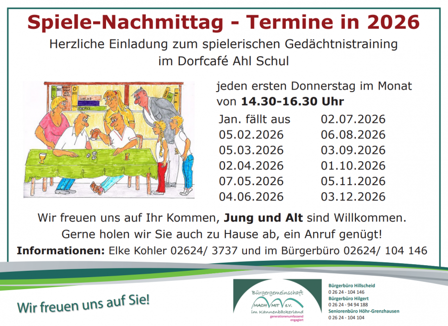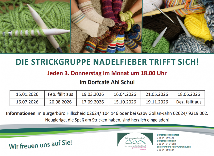 Terminübersichten MachMit Nadelfieber, Spielenachmittag und Erzählcafé